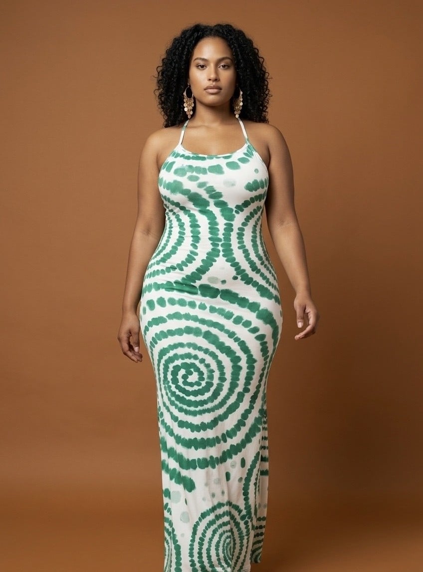 Turn heads in this stunning green and white tie-dye maxi dress designed to highlight your natural curves while keeping your look effortlessly stylish. Featuring a beautiful spiral tie-dye pattern, this dress brings a fresh, vibrant energy that’s perfect for warm weather and sunny days.